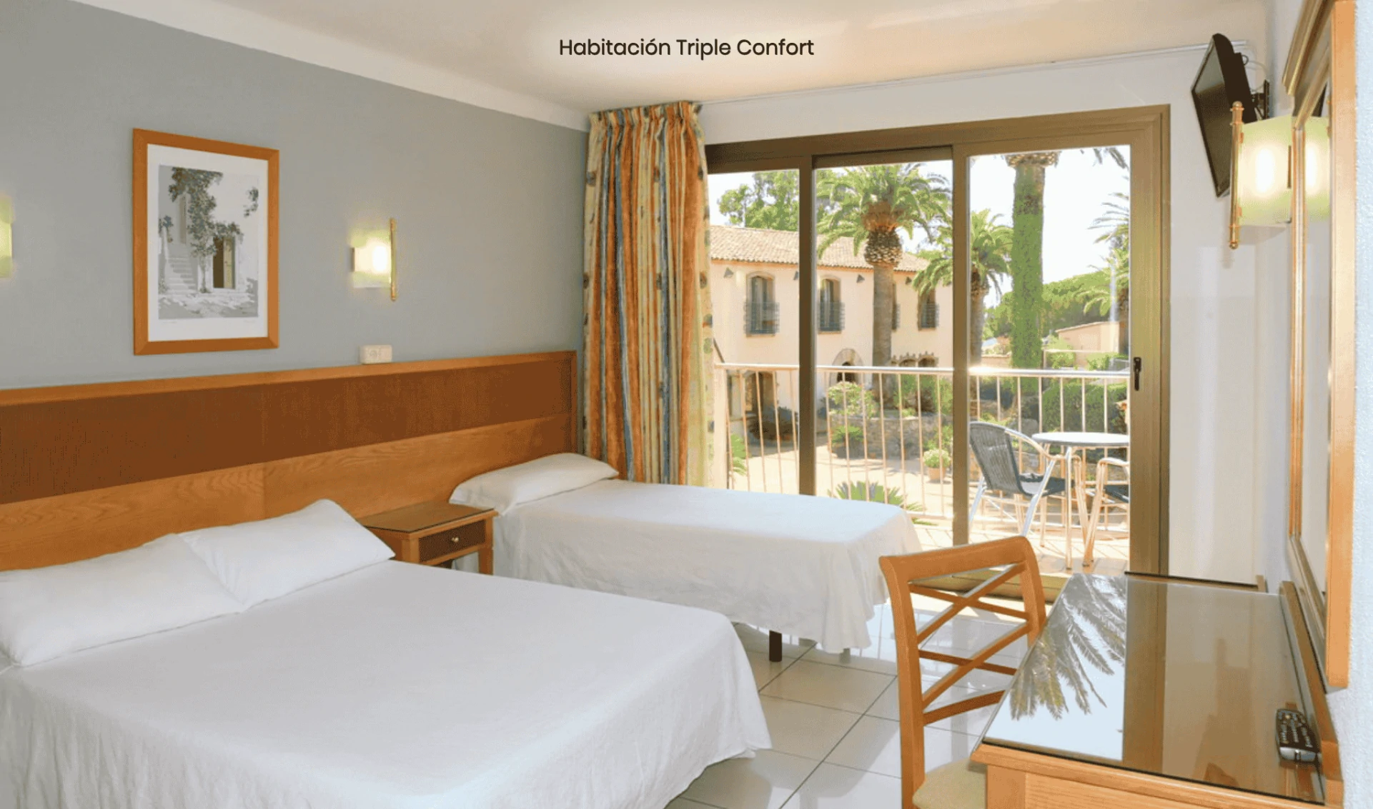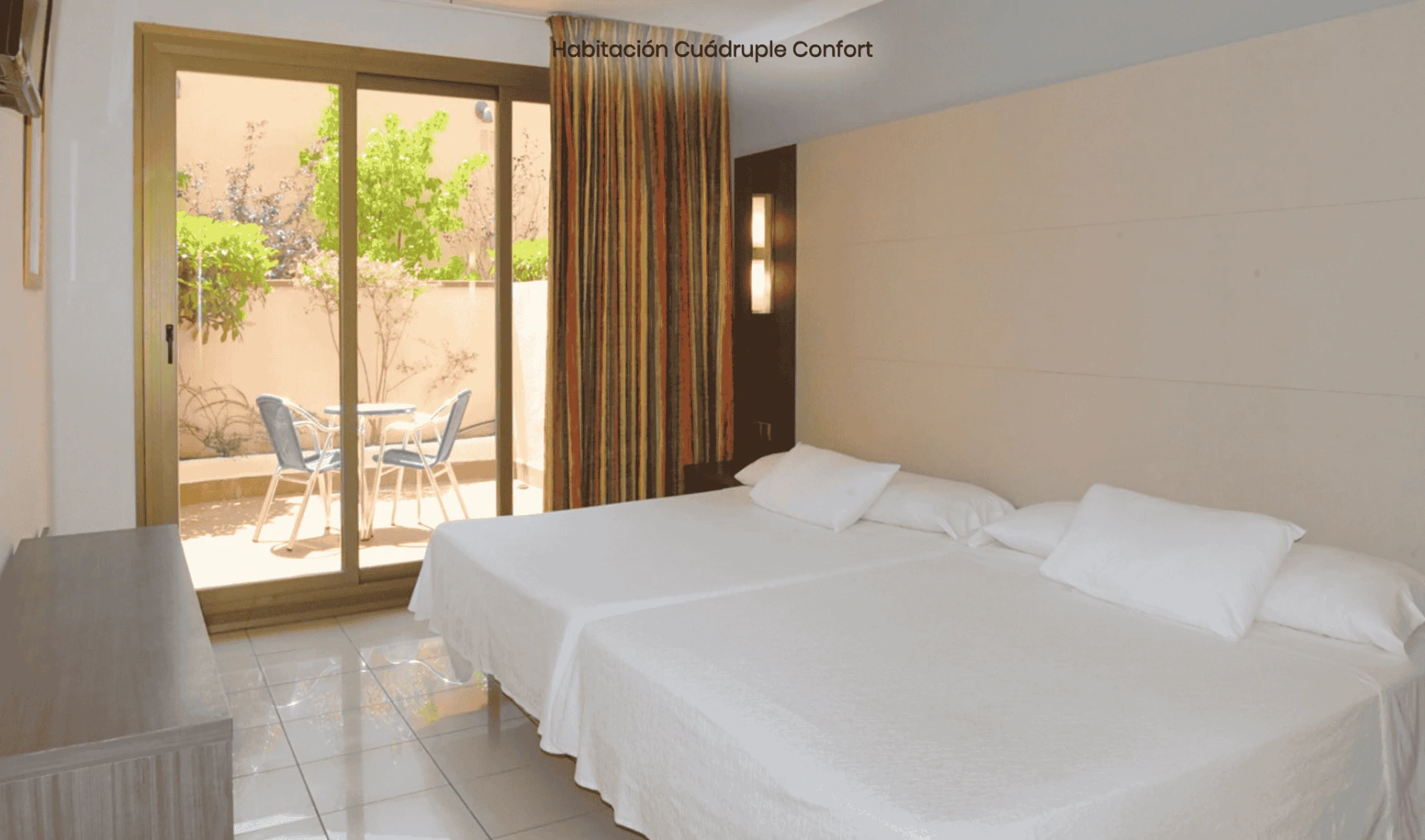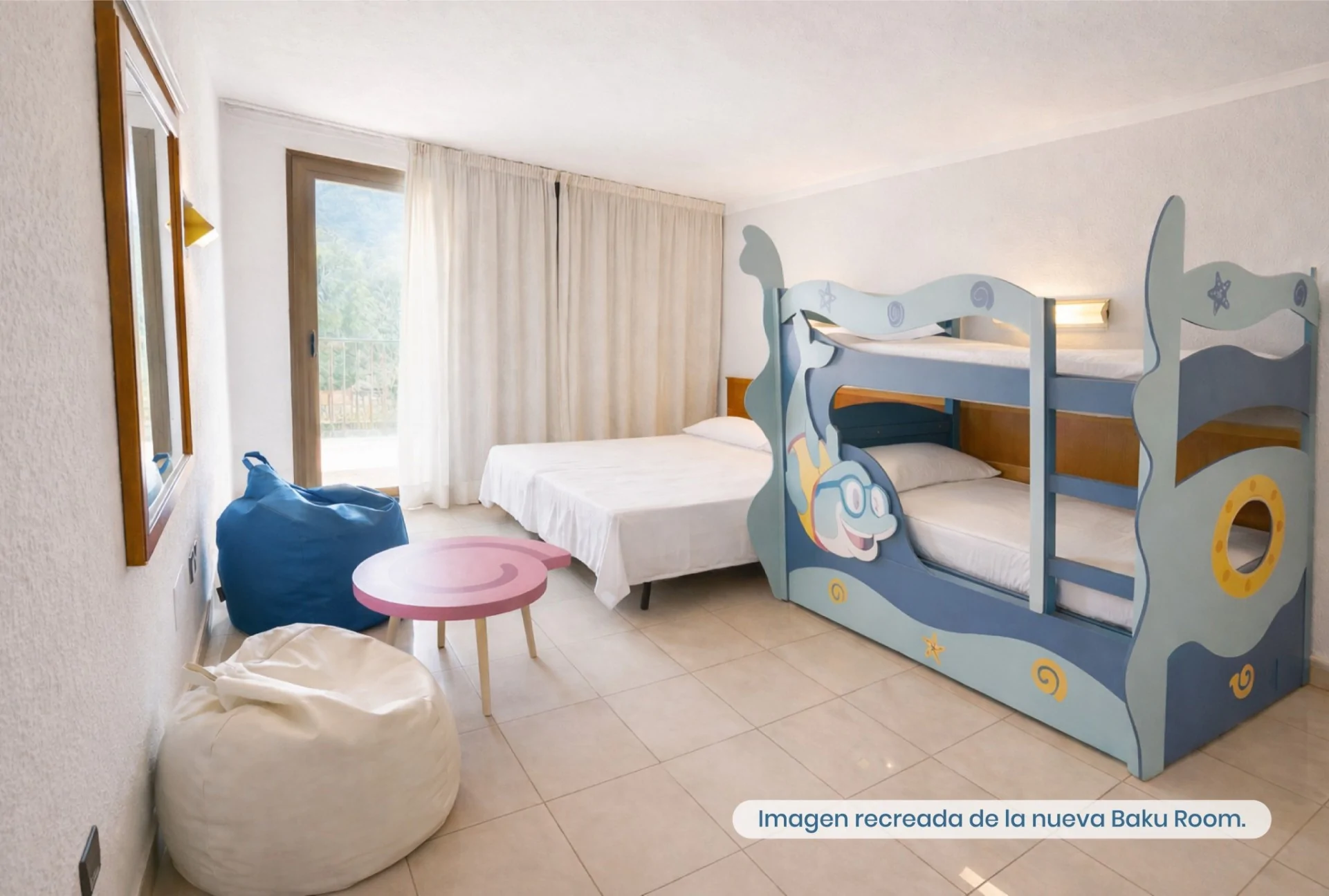 Con 104 habitaciones y 6 suites, el hotel ofrece completas instalaciones y actividades para todas las edades. Cuenta con una gran piscina exterior pre olímpica, además de restaurante buffet con showcooking, gimnasio y pista polideportiva, pensados para garantizar una estancia cómoda y llena de experiencias.